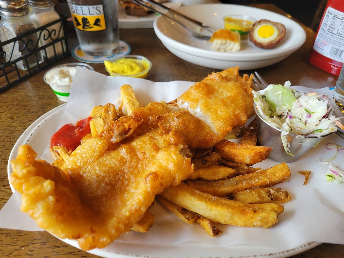 And then there’s the food — hearty, familiar, and lovingly crafted to match the convivial spirit of the place. You won’t find overly fussy presentations here; instead, the kitchen celebrates the kind of dishes that invite you to lean in and enjoy without pretense. Whether it’s the satisfying crunch of fish & chips with its golden batter, the comforting warmth of a bowl of seafood chowder or potato leek soup, or the nostalgic pull of bangers and mash served alongside tangy piccalilli, the flavors reflect a deep respect for both tradition and the simple joys of a well-made meal.