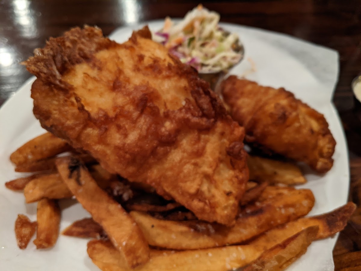Only reason I'm knocking off a star is because one of the bartenders served a guy who was clearly drunk. Otherwise the staff was friendly. They seemed a bit overwhelmed and tired on a Friday night, but can't blame them. Very Irish vibes throughout. Ambiance, food, drinks, patrons getting loud, unruly and drunk. Not sure if that's a good or bad thing. Surfaces were clean and not sticky. There is a section adjacent which has lower tables and is much quieter. Bathroom was disgusting. Also, the men's urinal is right in front of the door and can be seen all the way from the entrance of the building. Food and drinks were good.
