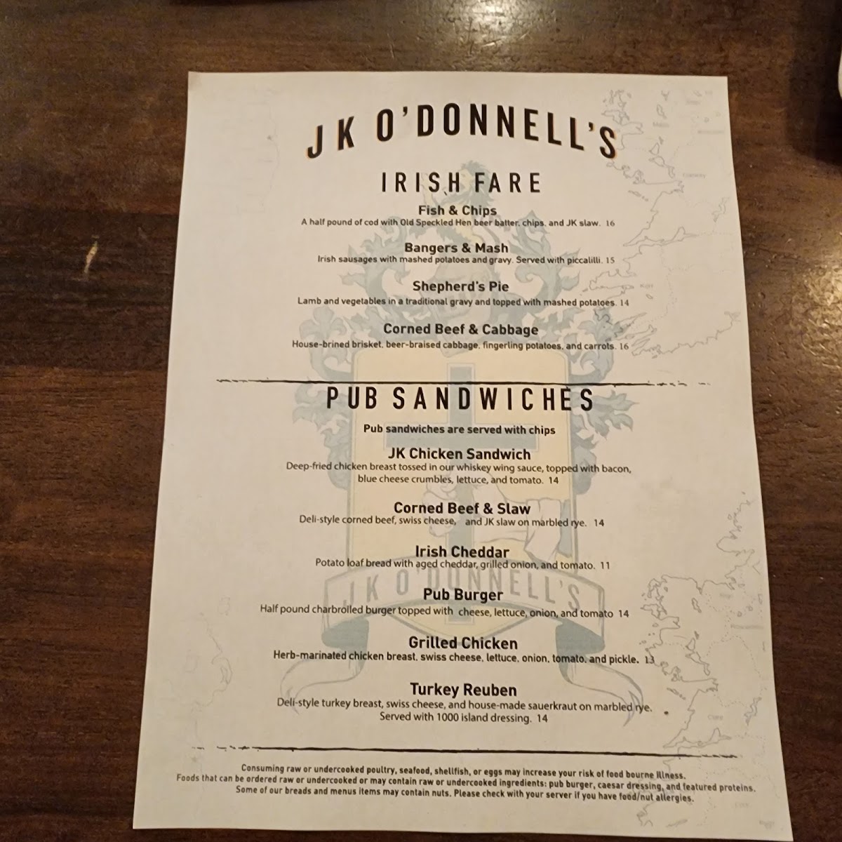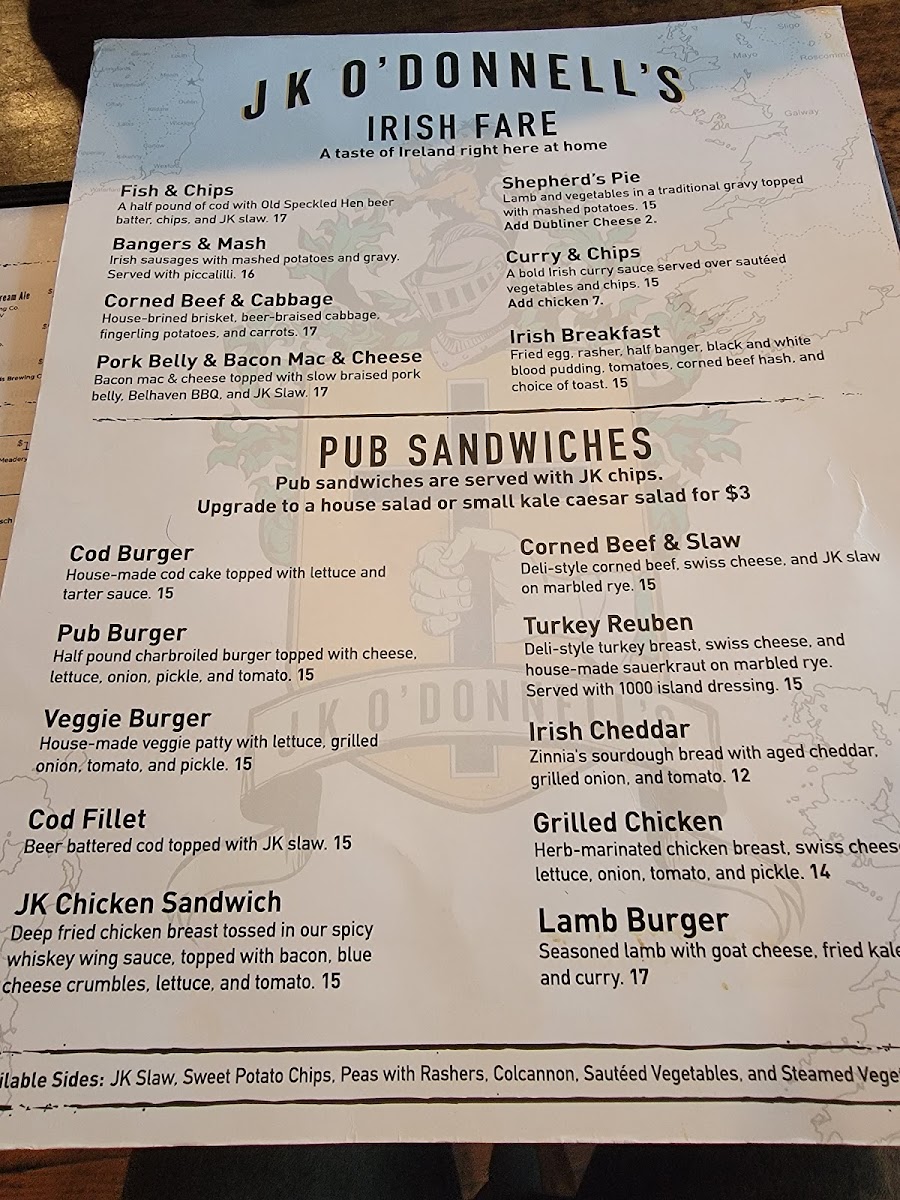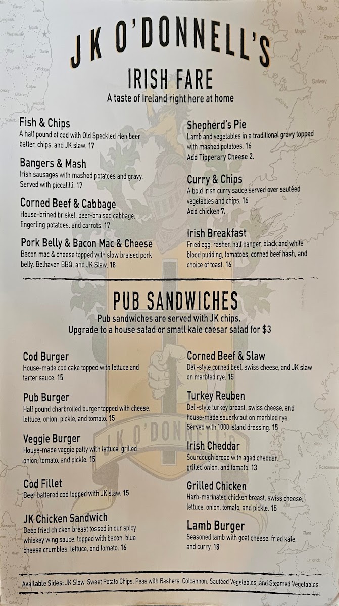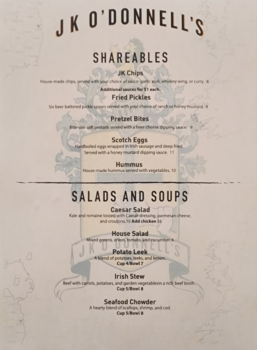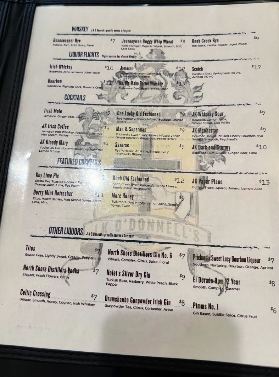 J K O'Donnell's Menu